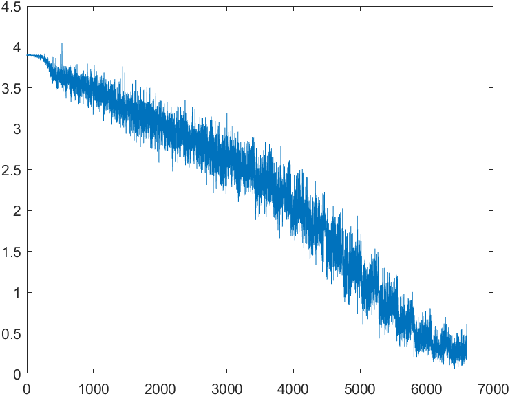 Analyzing our data, we know that our data points should be relatively logarithmic in nature and follow the opposite trend of a bell-curve, we attribute the lack of initial rise in our graphs to the fact that we are still working on training our model, and the batch size is still relatively unstable. For instance, the learning rate for our optimization algorithm is currently a bit low, so it is partially attributing to the slight plateau in the loss curve. Additionally, we are still experimenting with different batch sizes which will certainly impact the linearity of the loss curve.